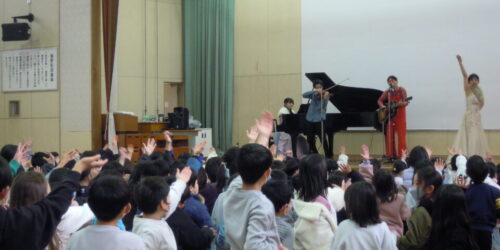 2026年1月29日 芸術鑑賞会 全国で爆発的な人気となっているオリジナルダンスナンバー「ヒコダンス」の音楽企画LARGOによるピアノ演奏、バイオリン演奏... カテゴリー 学校活動の様子/2025年度