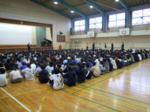 修了式・離任式を行いました。修了式では、1年生から5年生の全員の進級を報告し、これからも何事にもあきらめずに挑戦することを忘れないように頑張ろうと伝えました。また、春休みの過ごし方について話をしました。そして、離任式では、3月31日をもって本校を去られる教職員の紹介と離任される教職員のみなさん一人ひとりからあいさつをいただきました。