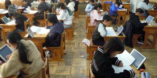 CBT方式による第2回みえ・スタディチェックを実施しました。この調査結果をもとに、さらなる授業改善にとりくんでいきます。