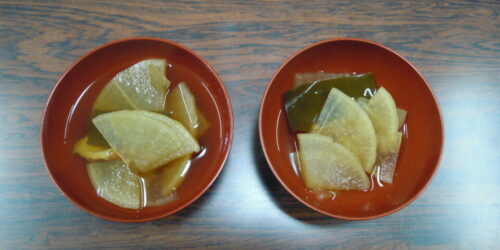 5年生では、自分達で種をまいて栽培した嬉野大根を収穫し、家庭科の時間に自分たちで出汁をとって、おでんをつくりました。おい...
